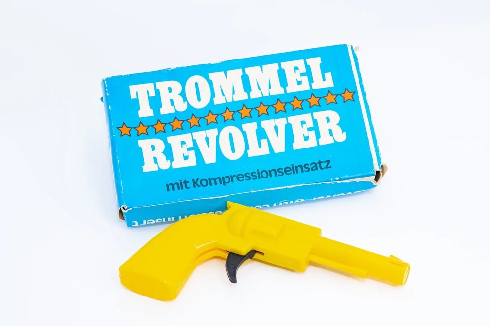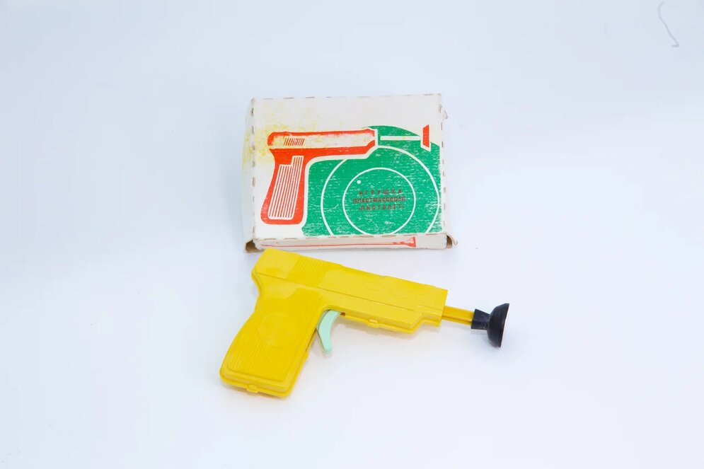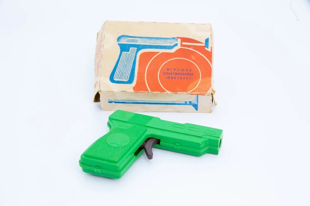 Этот пулемёт продавался в коробке, где на белом фоне было изумрудное изображение основных элементов рисунка (корпус автомата, мишени, эмблема завода), а также красные и фиолетовые детали.